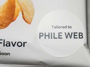 そんな内箱を開けると、丁寧にエアパッキンに包まれたポテチのパッケージがお目見え。さながら新しいデバイスを開封する時のようなワクワク感。シンプルなデザインが非常にスタイリッシュだ。右下には任意の名前がローマ字で袋に印字できるとのことで、媒体名「PHILE WEB」と刻まれている。これは開封するのがもったいない…。