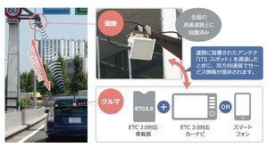 ETC 2.0とは次世代ETCシステムのことで、具体的には「ITSスポットに対応するなど進化した車載器・カーナビ」を指します。従来のETCは、車載機と高速道路料金所ゲートが無線通信し通行料金を決済するとともに、ICの出入り情報を記録することが役割でしたが、ETC 2.0はさらに強力です。