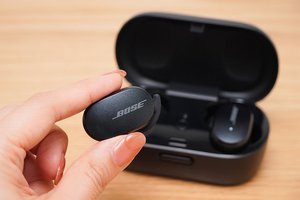 ボーズの人気モデル「QuietComfort Earbuds」は、アクティブノイズキャンセリング機能を備えた完全ワイヤレスイヤホン。定評ある高いノイキャン効果を持ち、またスポーツモデルで多く採用されるイヤーフィンが一体となった特徴的な「StayHear Maxイヤーチップ」の採用により、フィット感も追求している。