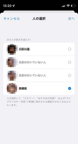 そんな残酷さもあるメモリーですが、iOS 15になってやっと、その部分への対策も用意されました。人物ごとに「表示を減らす」「表示しない」という設定が可能になったのです。