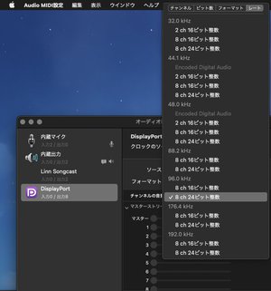 AVC-X6700HはAuro-3D対応だが、MacのAudio MIDI設定でスピーカー構成を「7.1リアサラウンド」に設定したり、ωプレーヤー側でAuro3D出力の「パススルー」を選ぶなど、アプリのマニュアルに沿った事前の準備が必要になる。