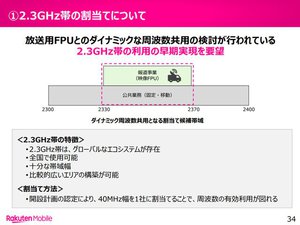 また楽天モバイルは現在、携帯3社に割り当てられているプラチナバンドの一部(800〜900MHz帯)から、同じ帯域幅ずつ再割り当てしてもらうという、少々面倒な要求をしています。仮にそれが実現した場合、3社との協議や対応が必要になるため、実際に使い始めるにはそれなりの時間がかかってしまうでしょうし、そうであれば、特定の1社が保有するプラチナバンドの再割り当てを求めた方が、相手が少なく使い始められるのも早いように思えてきます。