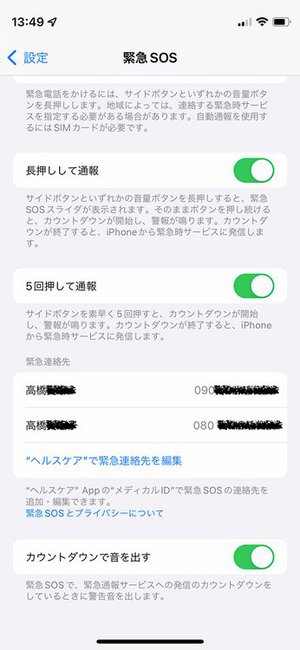 これら緊急SOS関連の機能や設定はただ知っているだけで意味がありません。万が一の緊急時に備え、そのとき確実に機能するように設定をあらかじめ確認しておきましょう。