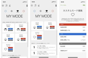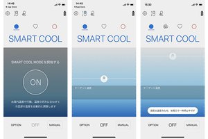 今回、操作機能として新たに、自動的に温度調節してくれる「SMART COOL MODE(スマートクールモード)」と、アプリ操作なしに自動で起動/停止できる「AUTO START/STOP」などのスマート機能が備わった。内蔵する4つの温度センサーと加速度センサーで、温度と行動を検知して自動化することで、スマホ要らずに使える利便性も向上させている。