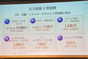 その背景には、通信以外の事業が好調に伸びていること、具体的には同社が成長領域と位置付ける「au PAY」「auじぶん銀行」などの金融事業や、企業のデジタル化需要を獲得している法人事業が好調に伸びていることが挙げられる。