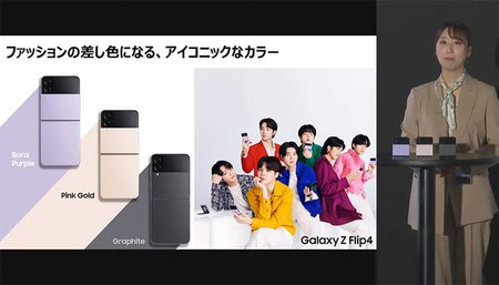 そして、同日朝に発表会を実施したのがアップルのライバル、サムスン電子の日本法人であるサムスン電子ジャパンである。同社は同日、日本でスマートフォン新機種「Galaxy Z flip4」「Galaxy Z fold4」を9月29日に発売すると発表したのだ。