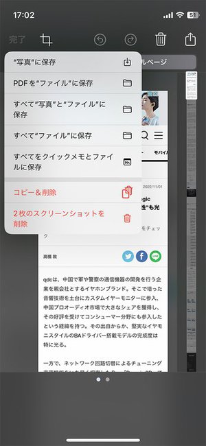注意点としては、あまりにも極端に長いページは途中で切れてしまうこともあるらしいこと。「このページ、異様に長いぞ」というページをスクショした際には念のため、保存したスクショをその場で開いて、ページの最後まで撮影されているか確認しておくとよいでしょう。