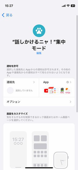 そこで追加の対策としておすすめしたいのが「集中モードに連動して壁紙を普段とは違うものに変える設定」です。集中モードのアイコン表示って小さくて、目に入りにくく、集中モードにしていることに気づかないこともあります。ですが、画面全体の背景である壁紙が普段とまったく違うものに変わっていたら、画面を見た瞬間に「集中モードにしたままだった!解除しなきゃ!」となりそうです。