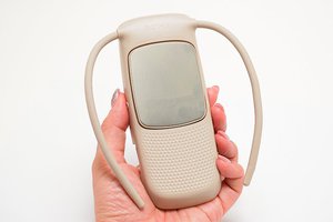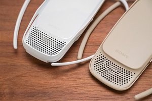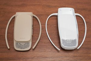 まずは、REON WIZの端末をチェックしよう。今回、冷温機能を備えたモジュール部分と、首元に装着するネックバンドが一体となった形状を採用している。REON POCKET 3と比較してみると、モジュール部分のサイズや質量などはほぼ変わらないが、違いは、その質感とネックバンド部分にあるようだ。