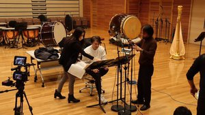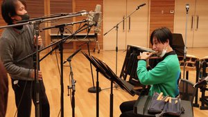 筆者が見学したときには、特定の和楽器と他の楽器とのバランスの微調整など、ミキシングの最終段階を迎えていた。バランスを追い込むことで、箏、鼓、尺八、琵琶、太鼓などさまざまな和楽器の独奏とヴァイオリンが絶妙に溶け合い、精妙な空気が漂う。これまで聴いたことのない新鮮なサウンドがスタジオ空間を満たし、幽玄な響きに身を浸すことができた。