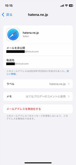 注目してほしいのは、エイリアスのそれぞれに、そのエイリアスでアカウント登録したウェブサービスの名前やURLが「ラベル」や「メモ]として添えられていること。それを見れば「このエイリアスって何に使ってるやつだっけ?」をちゃんと思い出せるというわけです。そのラベルとメモは「Appleでサインイン」で作成されたエイリアスには自動で記入され、自分で作成またはSafariから作成されたエイリアスには自分で書き込み可能です。