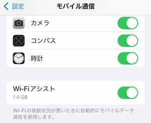 その理由は、iOSでは「Wi-Fiアシスト」、Androidなら「モバイルデータを常にONにする」という機能/設定にある。これはWi-Fi環境が不安定なとき自動でモバイル通信を使用してカバーするというもので、動画などを見ている際にふと止まってしまう、などの不具合を防いでくれる。ありがたくはあるのだが、一方で、Wi-Fi環境下にあってもモバイルデータ通信を行っている場合もあり、わずかながらでも通信容量を圧迫している可能性があるのだ。