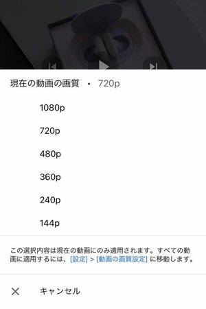 YouTubeで動画を視聴するとなれば、もっと通信量は大きくなる。YouTubeでは投稿された動画によるが、以下のような画質設定が用意されている(スマートフォンでは表示されない項目も含む)。