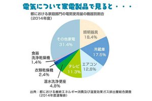 さて、家電において電気使用量の割合を見てみると、照明器具や冷蔵庫、エアコンなどに並び、「テレビ」が電気使用量の多い家電製品として位置づけられている。データを集計した年度や調査方法によって多少のズレは出てくるが、上位にランクインすることは間違いなさそうだ。