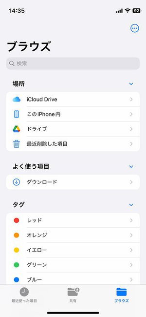 ●基本:[ファイル]App>[ブラウズ]>[iCloud Drive]>[ダウンロード]フォルダ