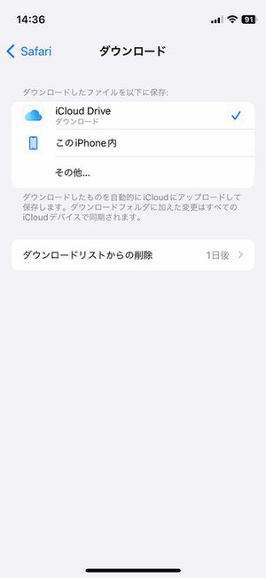 まず基本。Safariでダウンロードしたファイル全般の保存フォルダのデフォルト設定は[iCloud Drive]内の[ダウンロード]フォルダ。そこを探せば、ダウンロードしたファイルはだいたい見つかります。