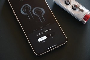 注意書きをよく読んで進み、アップデートが完了すると、アプリに「ノイズコントロール」が表示される。オン(ノイズ軽減)/オフのみで、効果のレベル調整はできない。また、イヤホン本体の操作に「ノイズコントロール」を割り当てられるようになるので、ここでは長押しにノイズコントロールを設定した。