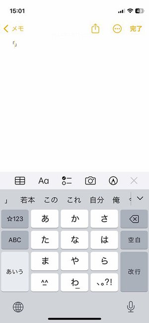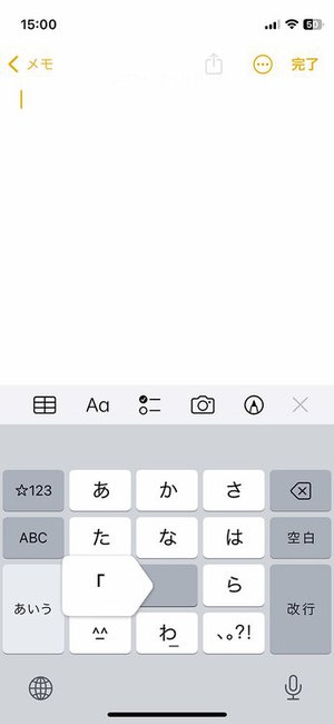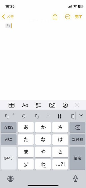 加えての小技として、[わ]の左右フリックのコンボで「」をまとめて入力するのもおすすめ。入力を確定した瞬間に入力カーソルを「」の間に自動で移動してくれるので、そのまま「」の中の文字を入力できます。ちょい便利!