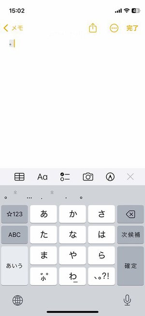 「・」「…」も数字モードならフリックで直接入力できます。ですが数字モードに行って戻っての手間を考えるとやはり、ひらがなモードで変換入力するのがよいでしょう。[、]から「・」、[。]から「…」に変換できます。