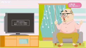 またNHKでは地上デジタル放送については、「電波の特性上、一般的に雨の影響により映りが悪くなることはありません」ともアナウンスしている。もし雨の日に地上デジタル放送の映りが悪くなる場合は、受信アンテナの給電部や増幅器などのケーブルの接続箇所などに水が入って電波が受信できない状況になってたり、ケーブルでの減衰特性が劣化していることが考えられるとのことだ。