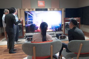 今回の動画では、レグザブランド統括マネージャーの本村裕史氏と声優の小岩井ことりさんが、JBLなどの老舗オーディオブランドを取り扱うハーマンインターナショナルの試聴室を直撃訪問。「100Z970M」を、JBLとマークレビンソンのハイエンドオーディオ機器に接続して楽しむという内容になっている。1つ前の回で機器のセッティングが終わり、いよいよ今回、視聴をスタートさせる。