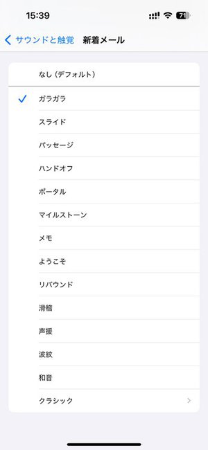 実は既存の着信音・通知音はリストのいちばん下にある[クラシック]項目の中にまとめて移動されました。それらを改めて選び直すこともできるのでご安心を。