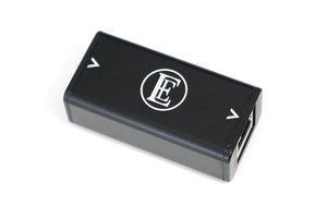 だが、オーディオの音質向上に効くアイテムは、果たしてゲームにも効く…のだろうか? 今回鈴木さんが持ってきてくれたのが、English Electricの「EE1」。LANケーブルに「直列」で挟み込んで使用する小型のアクセサリーである。