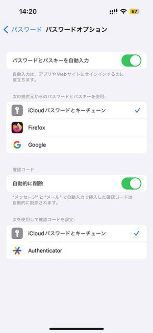 というわけでこの機能の設定はぜひオンにしておきましょう。[設定]アプリ>[パスワード]>[パスワードオプション]>[確認コード]>[自動的に削除]をオンです。