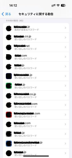 突然ですが[設定]アプリの[パスワード]項目を開き、そこに表示される[セキュリティに関する勧告]を確認してみてください。あなたがiPhoneに保存している様々なパスワードについて、何やら物騒な勧告がずらっと表示されませんか?こわッ!