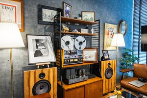 最後に、今後予定されている新製品「ATM-1 2024edition」を聴かせてもらった。スピーカーはBowers & Wilkinsの「802 D3」、試聴室というより音楽好きのオーディオルームのような、アナログレコードがたくさん飾ってある部屋であった。