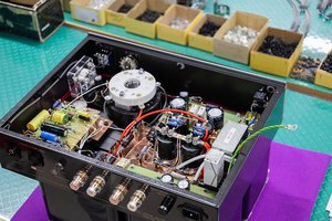 1986年4月に発売されたEL34pp真空管搭載の、エアータイトブランドの初号機であるパワーアンプ 「ATM-1」の名前を冠したモデルで、東京インターナショナルオーディオショウや大阪セッションでお披露目されたもの。電源トランスなどはまだ練り上げている途中だがほぼほぼ完成に近く、比較的安価な製品としてリリースされるとのこと。