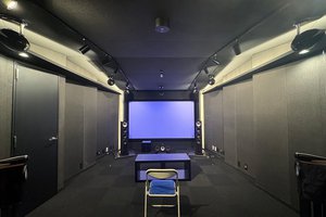 弊社は4月15日に事務所を移転。これに伴って試聴室「WHITE」「BLACK」が新設された。取材使用されていないことを確認して潜り込んだ「BLACK」は、スクリーンが張り込まれ、ビクターのD-ILAプロジェクターが常設されるシアタールームだ。天井にはイクリプスのスピーカーをビルトインし、立体音響フォーマットの再生をもカバーする。