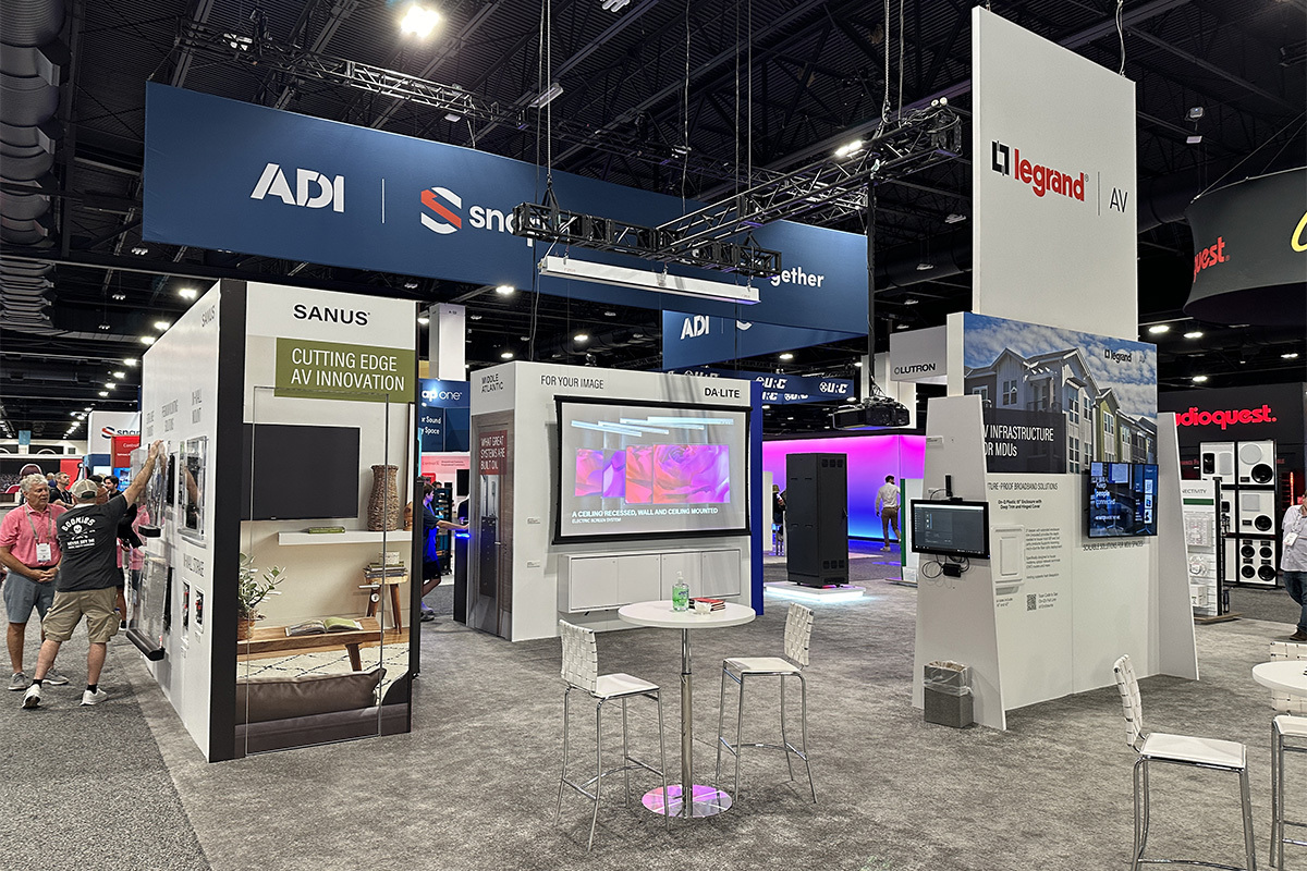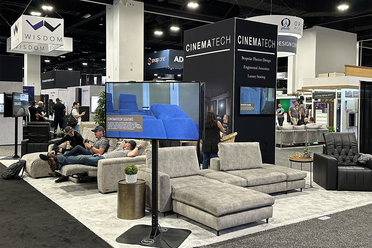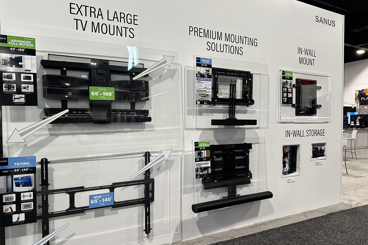 次は日本でも展開している壁掛金具メーカー、SANUSのブース。ユーザーのみなさんにとってあまり馴染みがないかもしれませんが、カスタムインストールの際はこういったアクセサリーのチョイスも重要な要素のひとつです。
