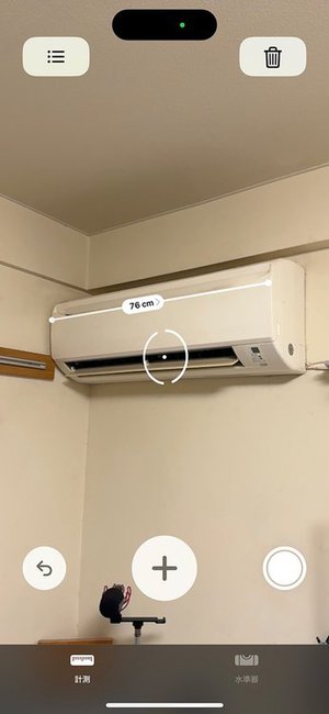 別にiPhoneでやらなくても巻き尺があればそれでいいという機能ではありますが、「巻き尺は手元にないけれどiPhoneならここにある」ってことは多々ありそうですよね。そんなときは計測アプリでささっと計測!です。