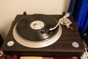 プレーヤーがデノンの「DP-3000NE」で、カートリッジはJICOの「J50」。交換針は牛殺。さすがはカートリッジ・交換針メーカー、自由に試聴できるように各種ストックがある。