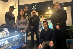 その日正午過ぎに店へ集合したのは、僕らのほかエイ・アンド・エムの藤子不二雄的開発設計コンビ林口佳弘さん、濱田潔さん、音元出版の筑井真奈さん。皆さんが観客だ。