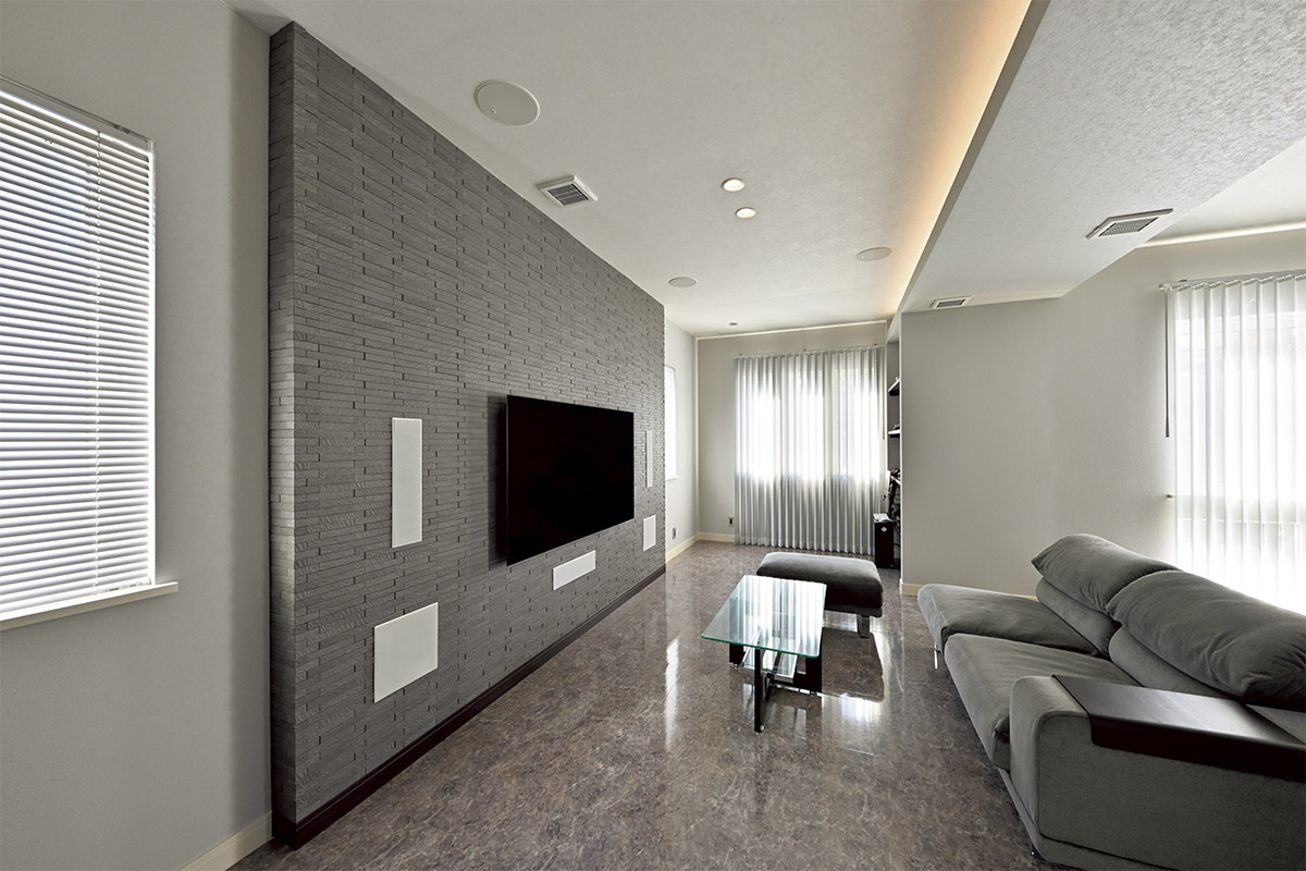 HOMETHEATER DATA ●住宅形態:戸建/新築 ●家族構成:夫婦+子ども2人 ●ホームシアターの広さ:約24畳 ●画面サイズ:65型 ●サラウンド:5.2.4ch ●インストール内容:機器設置、システムプランニング ほか