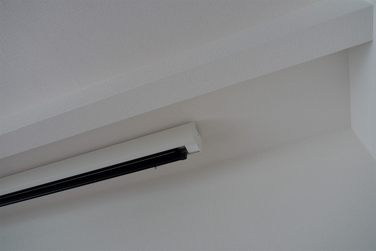プロジェクターやスピーカーなど露出する機器はホワイトのカラーモデルを中心に揃え、ケーブル類は壁や天井を通して隠蔽して、部屋の明るさやインテリア性を損ねないように配慮。すっきりとしたリビングの美観と、本格的なシアターシステムの導入を両立している。