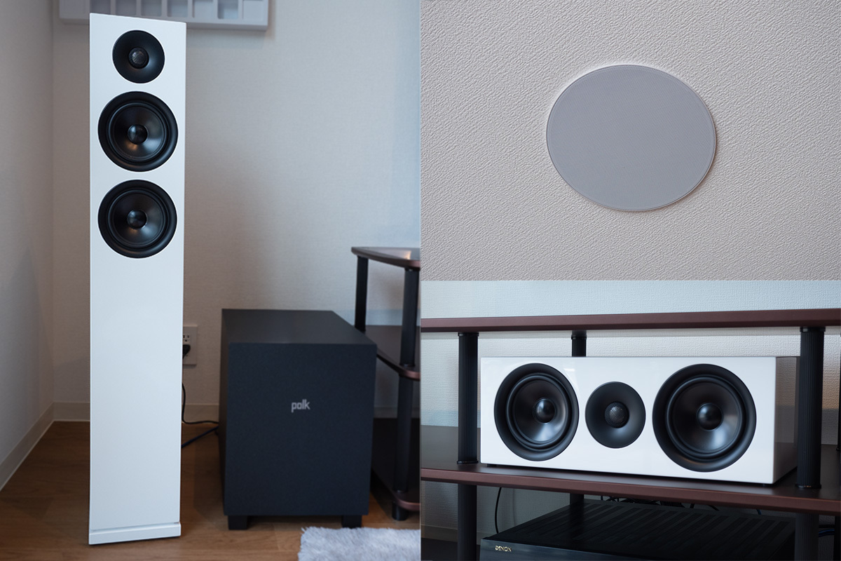 さらに、スリムな見た目と省スペースを確保しつつ、ステップアップできる要素として、リアスピーカーとサブウーファーを追加した5.1chサラウンドもセッティング。ホームシアターファクトリーの埋め込みスピーカー「HF-SP250」とKEFのサブウーファー「KC62」という小型モデルを選定して、サウンドの強化を実現している。