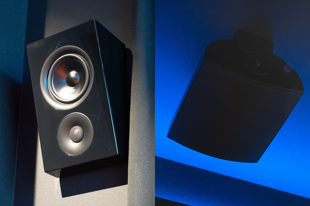 パワーが必要なフロント/センタースピーカーはBowers & Wilkins “700 S3シリーズ” を採用、ほかサラウンド/サラウンドバックスピーカーは壁掛けタイプ、トップフロント/トップミドル/トップリアスピーカーは天吊りタイプのホームシアターファクトリー製品をそれぞれ導入している。