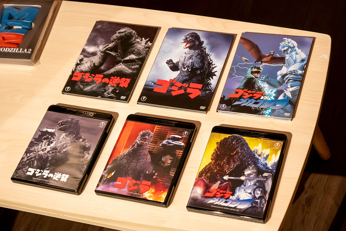 各作品の映像特典もさることながら、製品の目玉でもある特典ディスク「秘蔵映像集」だ。DVDに収録されているものの以降のメディアに収録されていない映像や、倉庫から出てきたフィルムなどを185分収録! シリーズファンの中ではまだまだ若輩に当たる記者だが、伊尾喜さんは「これ観に行ったよ!」と、「ゴジラ映画大全集 ゴジラ誕生25周年」上映の予告にエキサイト。目にするのも当時ぶりとのことで、噛みしめるように見入る姿が印象的だった。