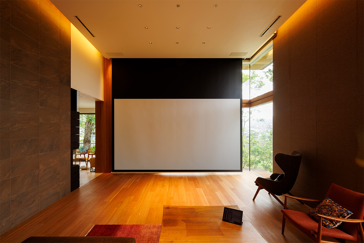 200型スクリーンの圧倒的な没入感! 緑を愉しむ住まいに寄り添うビルトイン・シアター