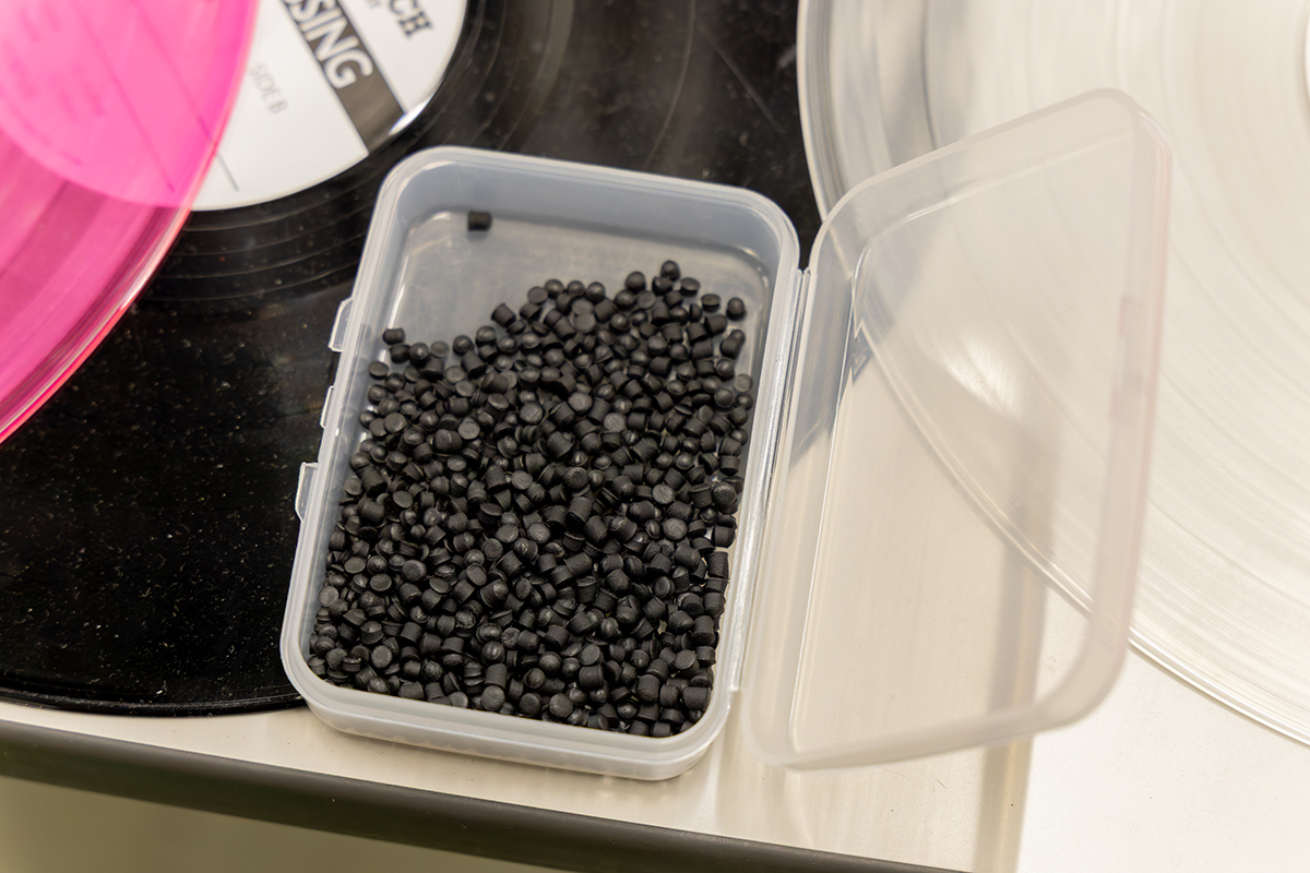 クオリティに対するコダワリは、生産だけに留まらない。例えばレコード盤に使う素材も世界各国から様々なチップを集めて研究している。アーティスト側からの要望があるというカラーレコードは現在30色近く用意されているほか、より高品位なレコード生産のための素材配合を探求しているという。
