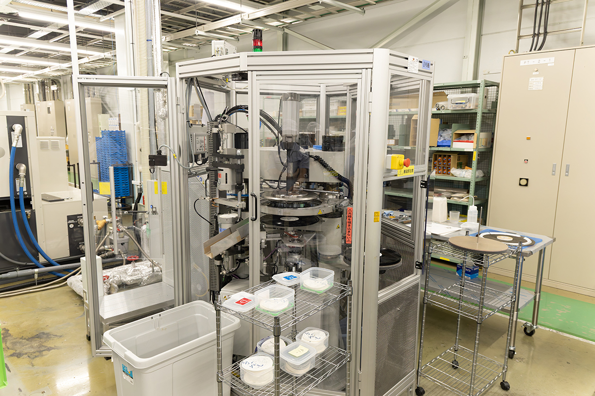また抜き取りで、反りや偏心のチェックも行われる。その検査機は自前で作ったワンオフ品。こうした技術力があるのも、メモリーテック御殿場工場の強みだという。この品質検査はプレスの序盤、中盤、終盤と3回行われ、不合格の場合、一旦生産を止めるという。