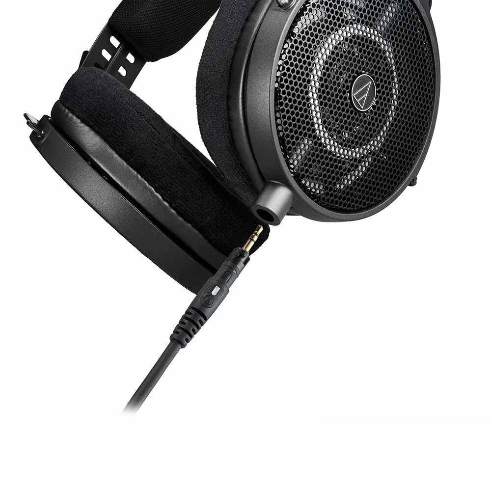 また、プロユースを主眼としたATH-R70xaと異なり、ATH-R50xは業務用機器だけでなくスマートフォンやDAPとの接続も想定し、インピーダンスを50Ωに抑えるなどの幅広い接続性を確保した。ケーブルは3.5mmの着脱式を採用し、付属品として6.3mmステレオ変換プラグアダプターを同梱。再生周波数帯域は5Hz - 40kHz、出力音圧レベルは93.3dB/mW、最大入力は1,600mW。コードを除いた本体質量は約207gとなる。