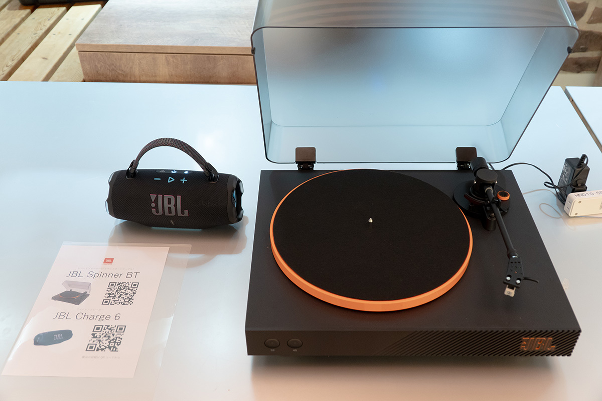 JBLからは、レコードプレーヤー「Spinner BT」とBluetoothスピーカー「Charge 6」との組み合わせなどが用意され、また、音を出すことはできない状態だったが、サウンドバー「BAR 800」も展示されており、こうした機器もレコード再生に利用できるユースケースも紹介されていた。
