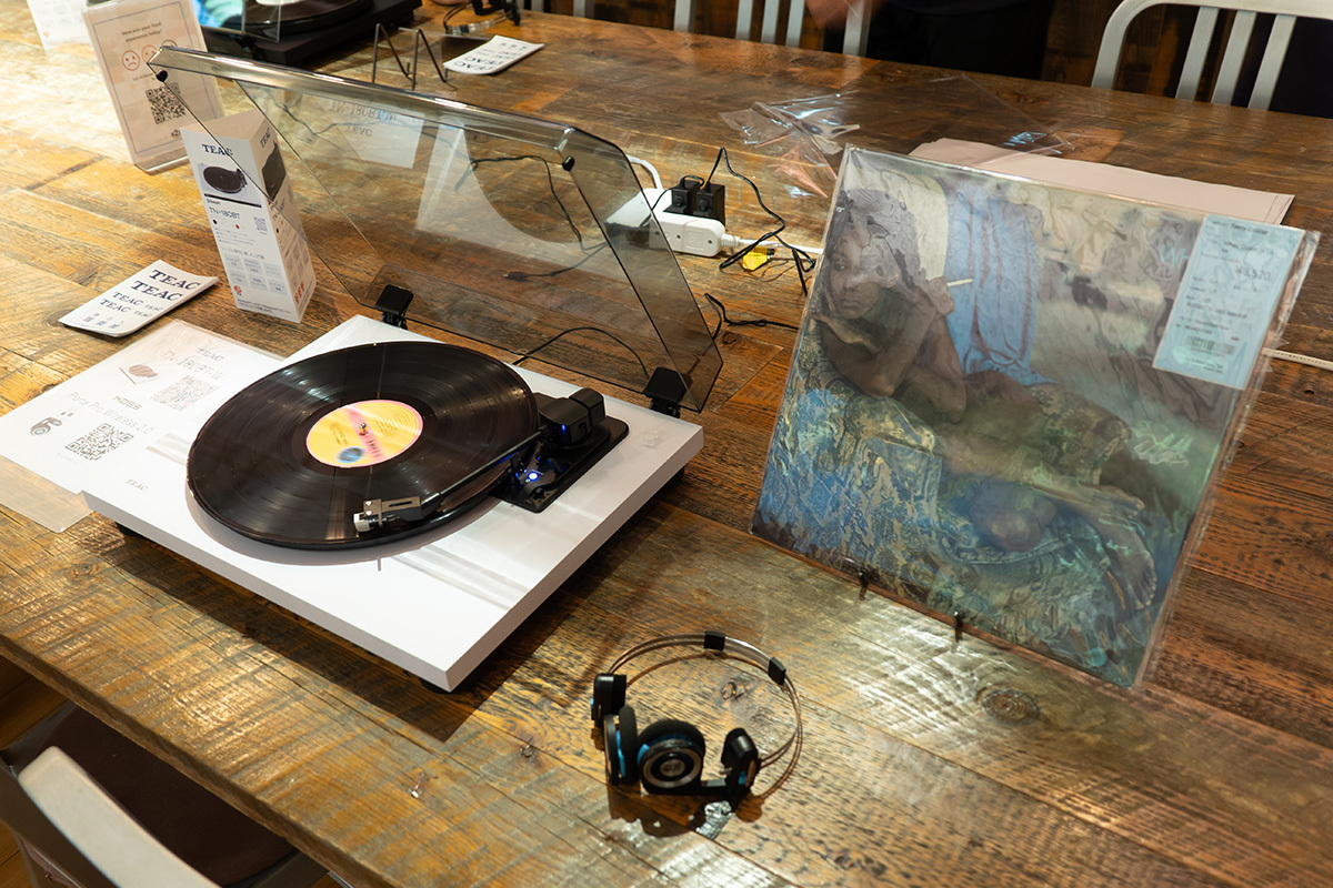 オーディオテクニカ、ティアック、JBLといった人気メーカー各社のオーディオ機器と、タワーレコードがチョイスしたレコードが用意され、参加者が実際に体験できるようになっていたのが大きな特徴だ。