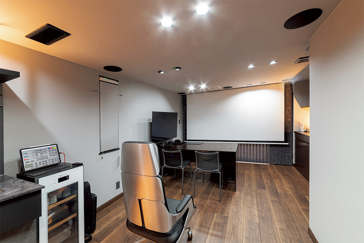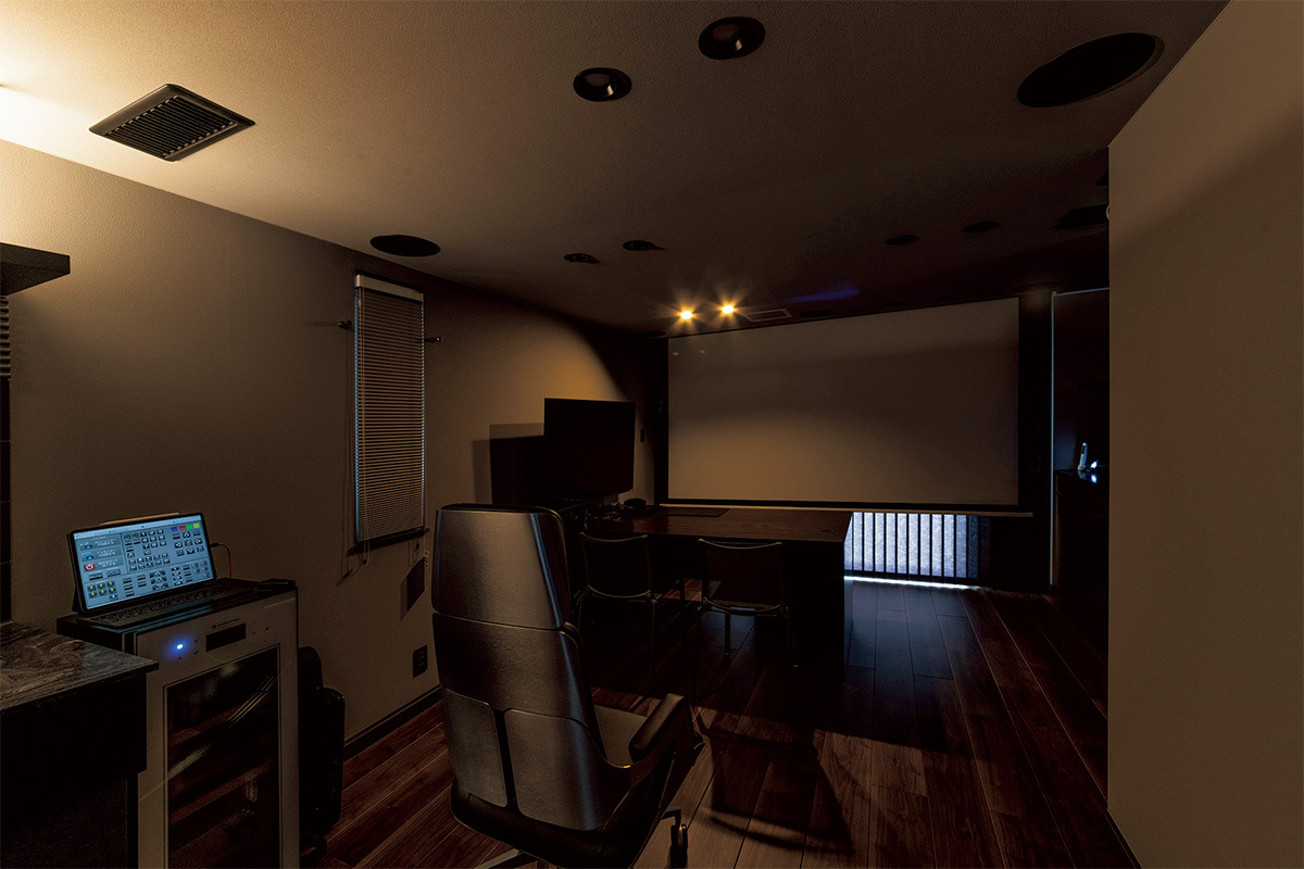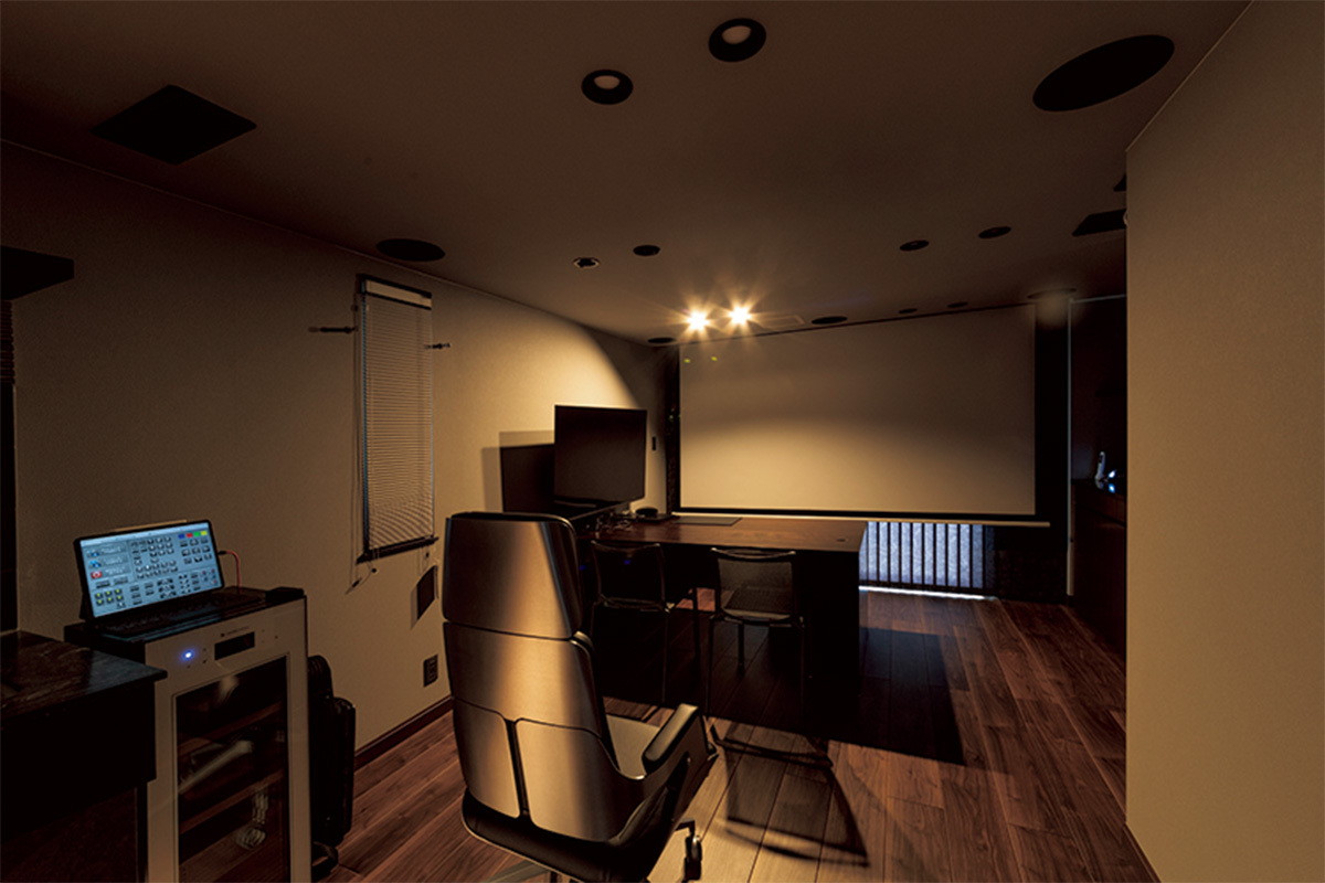 ホームシアターのインストールを手がけたのは、AV Kansaiの岩元秀明氏。在宅ワークを行う書斎も兼ねているため、動線の邪魔にならないようにオーディオビジュアル機器を露出させないことがコンセプトだったという。