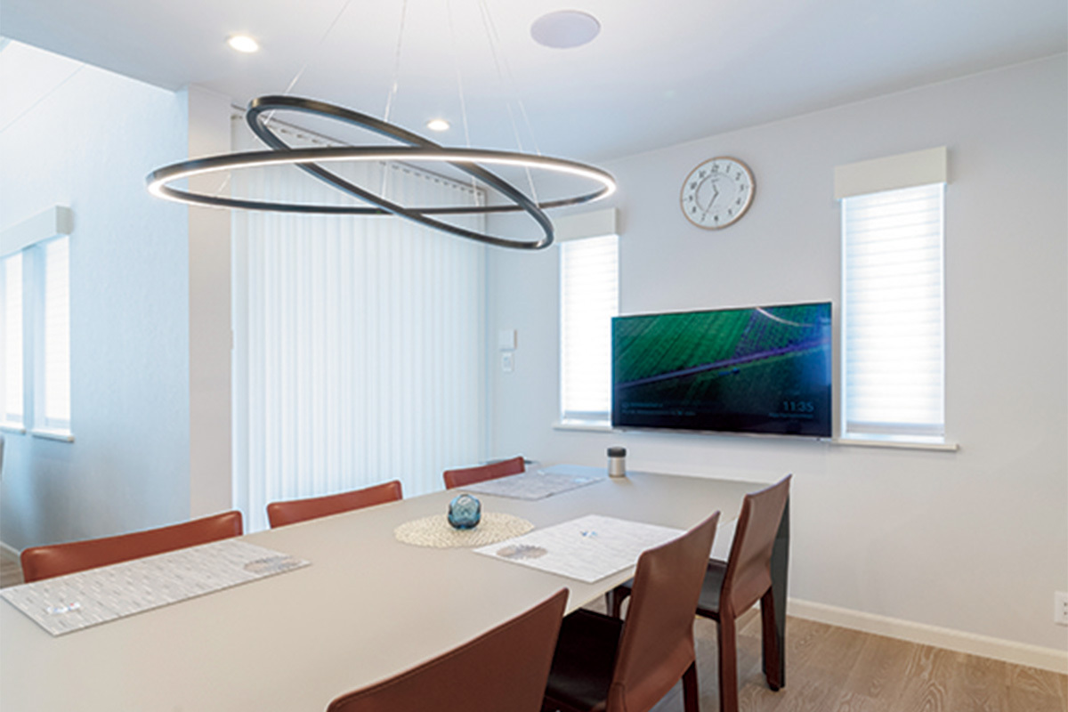 さらに岩元氏は、暮らしを豊かにする提案も盛り込んだ。リビングにあるAVアンプを使って、キッチンとダイニングへの音楽配信を実現しているのだ。当初は家電量販店でAV機器を購入しようと思っていたというMさんも、インストーラーならではの提案力の高さに、「プロに頼んでよかった」と満足しているという。