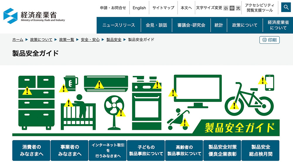 少しでも不安がある場合は、メーカーのWEBサイトで製品リコール情報を確認するか、経済産業省の製品安全ガイド、独立行政法人 製品評価技術基盤機構の「NITE SAFE-Lite」で事故/リコール情報を検索してみましょう。